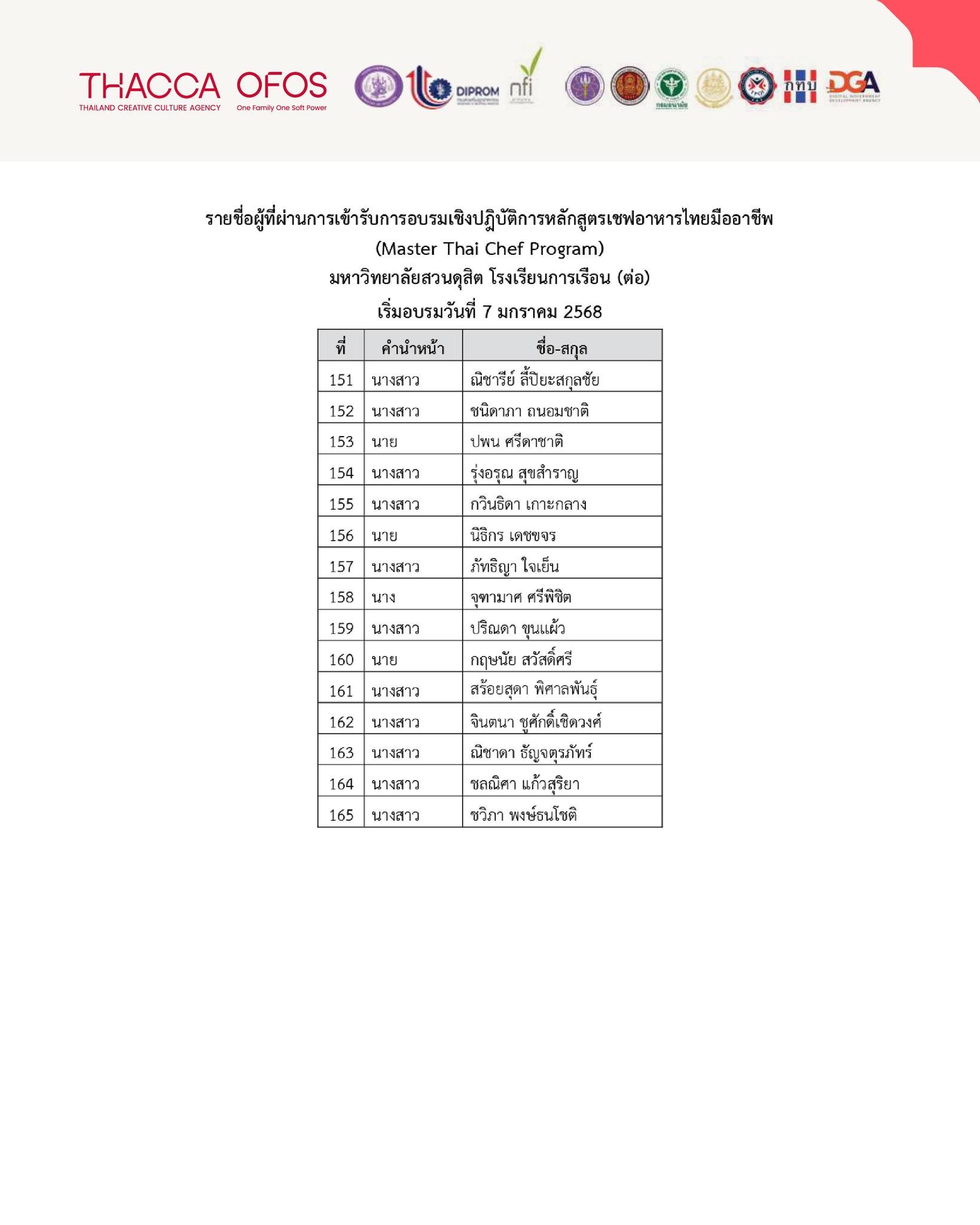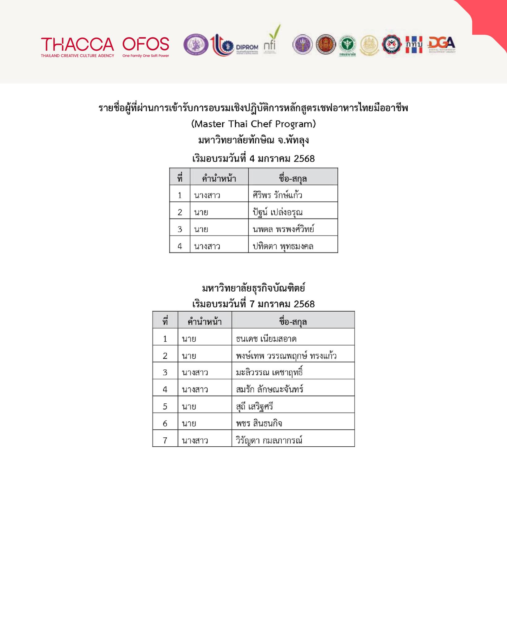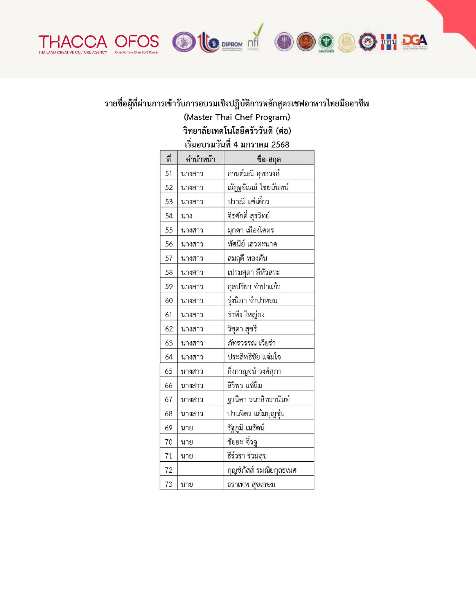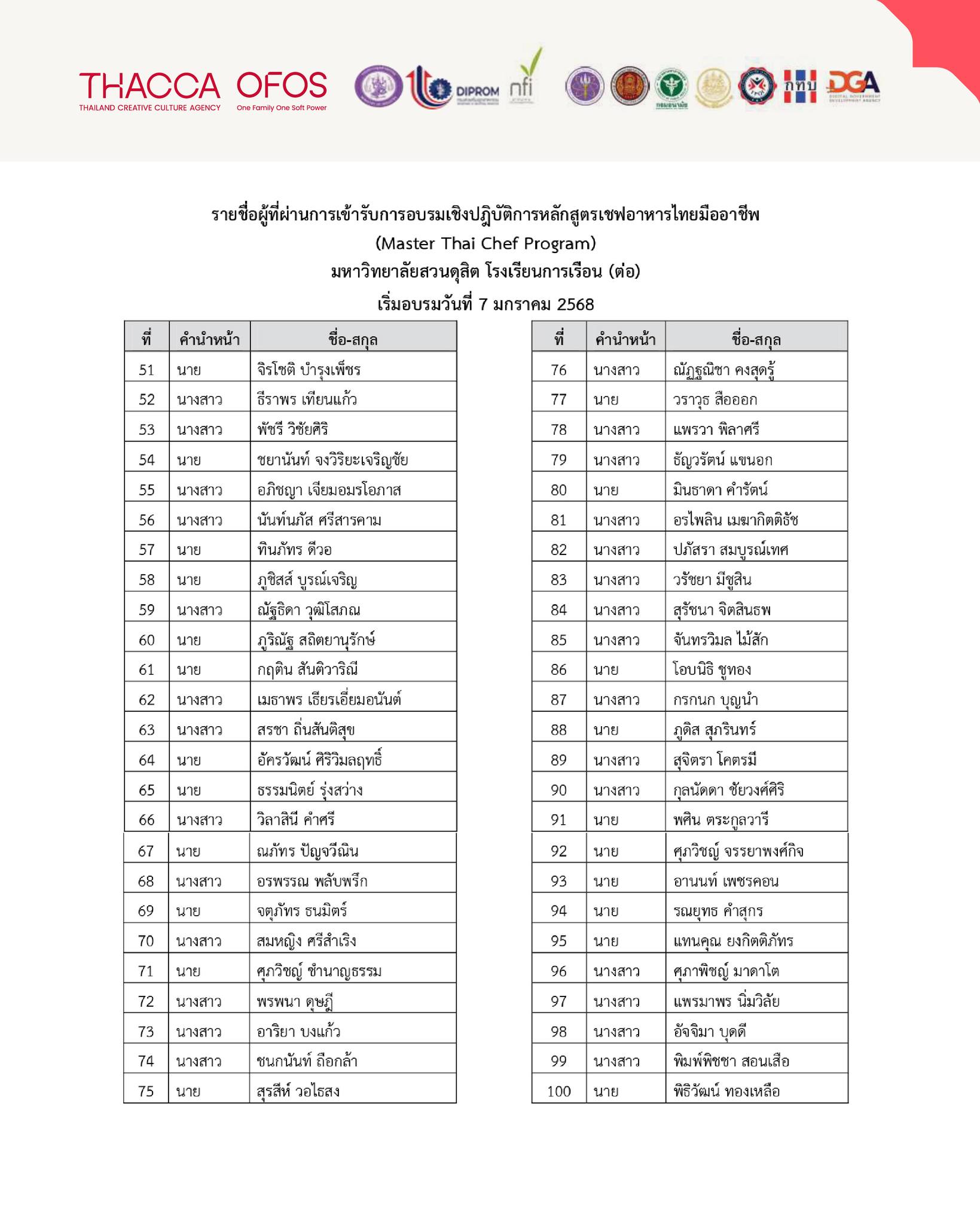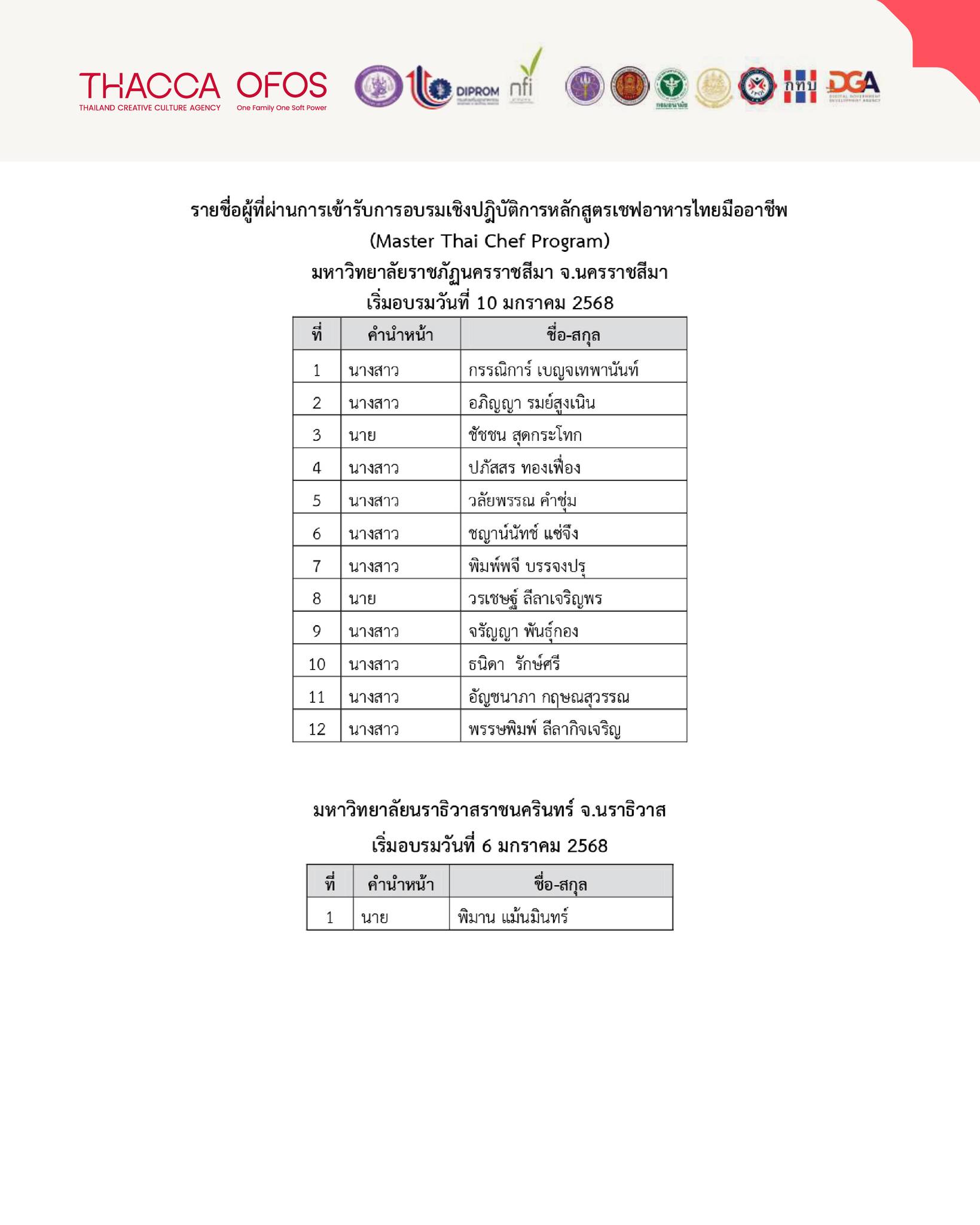 THACCA โดยคณะอนุกรรมการขับเคลื่อนอุตสาหกรรมด้านอาหาร ประกาศรายชื่อผู้ผ่านการคัดเลือกเข้าร่วมอบรมในโครงการ “หนึ่งหมู่บ้าน หนึ่งเชฟอาหารไทย” รุ่นที่ 1