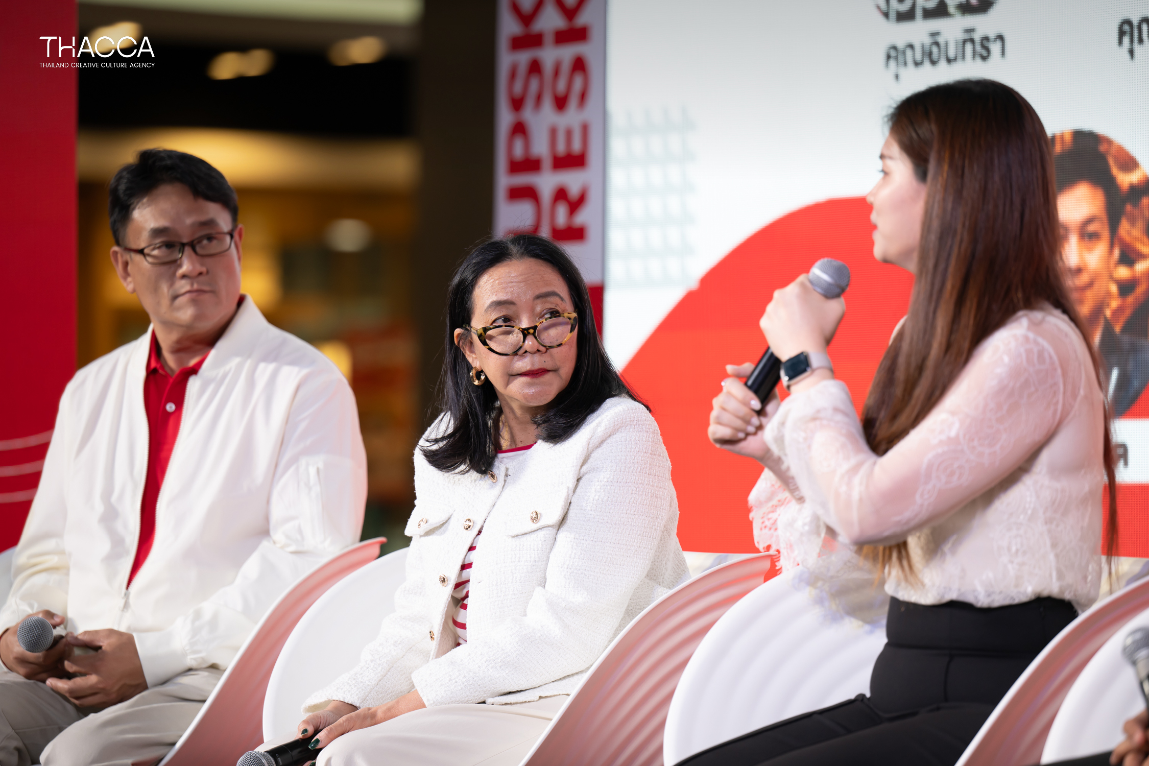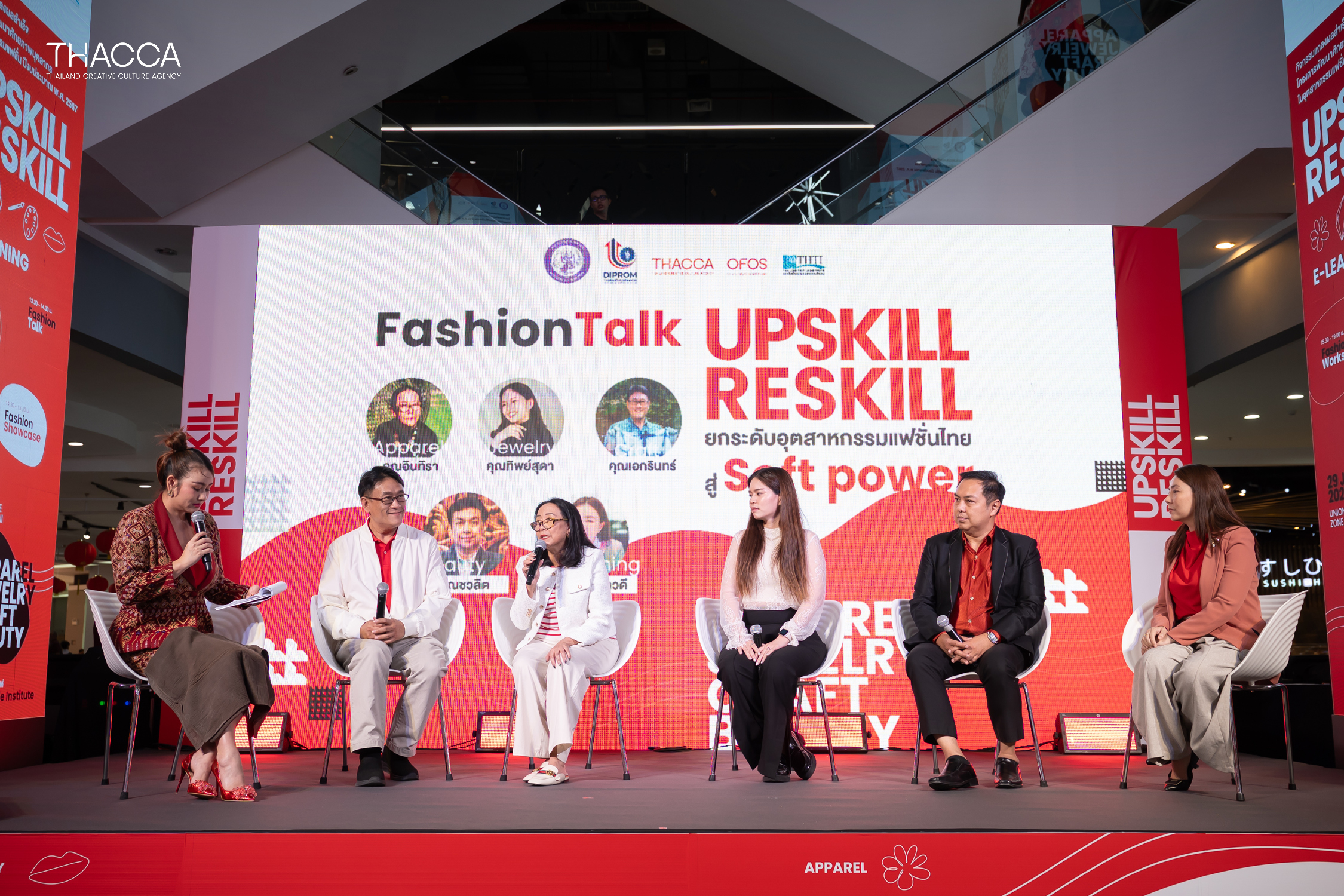นอกจากนั้น ยังมีการจัดเสวนาในหัวข้อ “Upskill & Reskill ยกระดับอุตสาหกรรมแฟชั่นไทย สู่ Soft Power” โดยมีคุณอินทิรา ทัพวงศ์ ผู้อำนวยการหลักสูตร OFOS แฟชั่น ผู้แทนจากหน่วยงานภาครัฐ ภาคการศึกษา และภาคธุรกิจ มาร่วมแลกเปลี่ยนความรู้และประสบการณ์ตรงจากการทำงาน รวมถึงมีการจัดนิทรรศการแสดงผลิตภัณฑ์จากผู้ผ่านการฝึกอบรมในครั้งนี้ด้วย
