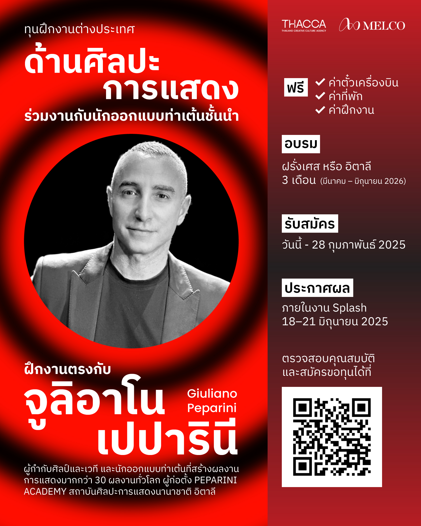 Thailand Creative Culture Agency (THACCA) ร่วมกับ Melco Resorts & Entertainment เปิดรับสมัคร “ทุนฝึกงาน THACCA x Melco Global Soft Power Academy” ใน 5 สาขาสุดฮอต! ได้แก่ ด้านศิลปะการประกอบอาหาร ด้านการออกแบบและนวัตกรรม ด้านสถาปัตยกรรมและการพัฒนาเมือง ด้านศิลปะการแสดง และด้านกลยุทธ์การสร้างแบรนด์และการพัฒนาผลิตภัณฑ์สร้างสรรค์