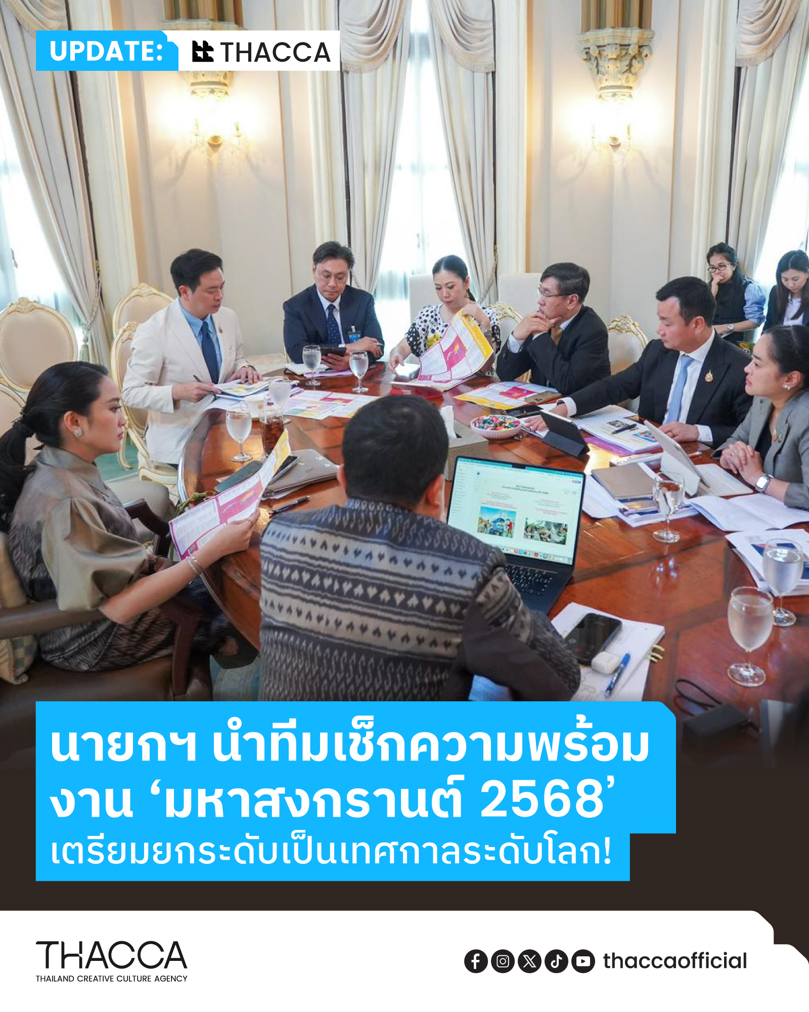 วันที่ 11 มีนาคม 2568 นางสาวแพทองธาร ชินวัตร นายกรัฐมนตรี เป็นประธานการประชุมร่วมกับหน่วยงานที่เกี่ยวข้อง เช่น กระทรวงการท่องเที่ยวและกีฬา กระทรวงวัฒนธรรม การท่องเที่ยวแห่งประเทศไทย (ททท.) และ THACCA-Thailand Creative Culture Agency หารือถึงแนวทางการจัดงาน “มหาสงกรานต์ 2568” ให้ยิ่งใหญ่กว่าทุกปี พร้อมผลักดันให้เทศกาลสงกรานต์ของไทยก้าวสู่ระดับโลก