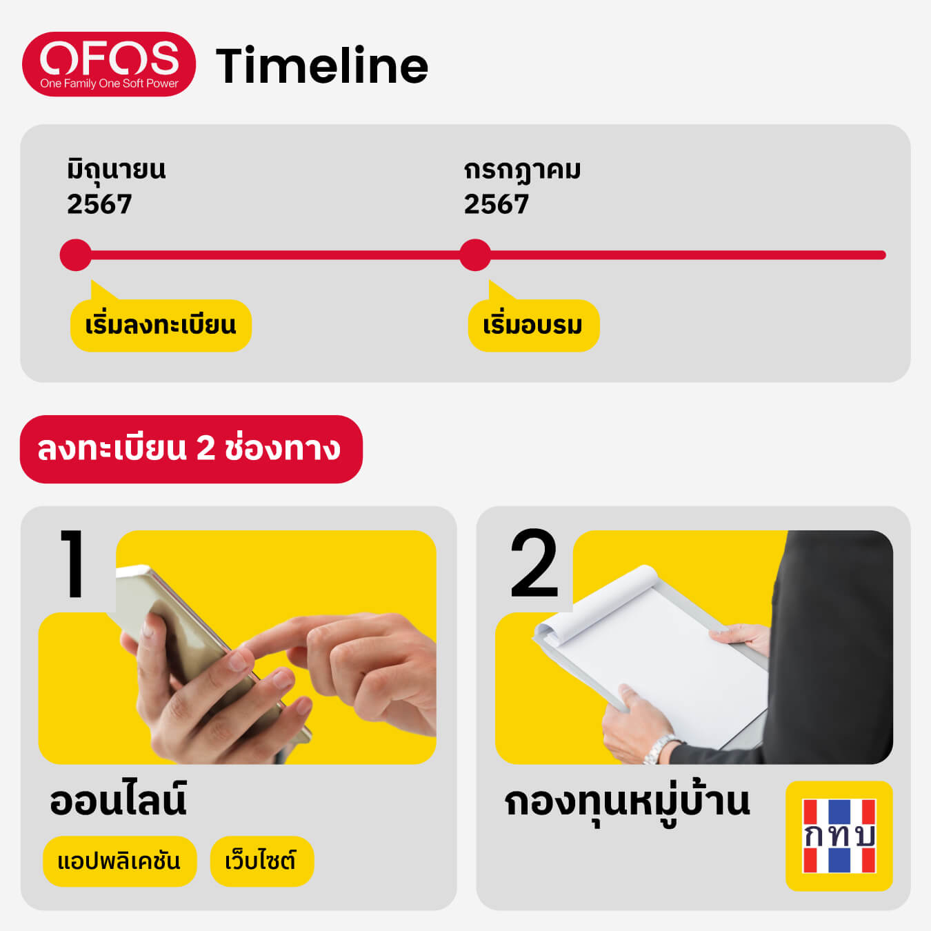 - ลงทะเบียนผ่านกองทุนหมู่บ้าน ทุกหมู่บ้านทั่วประเทศ
